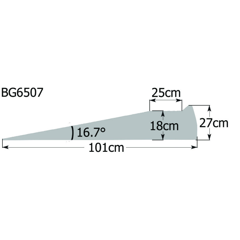 BG6507 (Medium): 101cm in length by 25cm wide, lifting to a height of 18cm, with a gradient angle of 16.7°.
